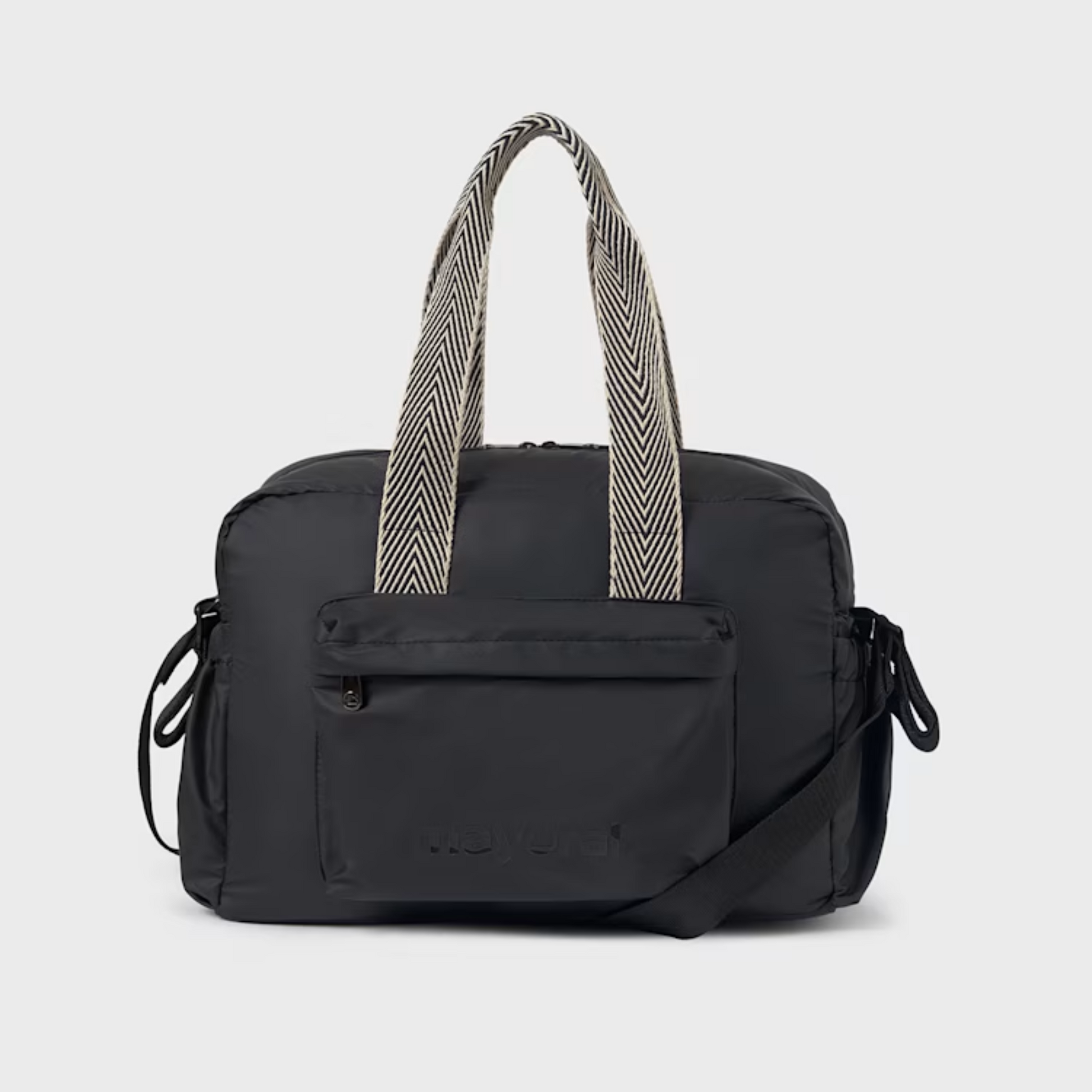 Esta práctica y elegante pañalera impermeable de la reconocida marca española Mayoral, está disponible en una variedad de colores: roso, negro y beige.