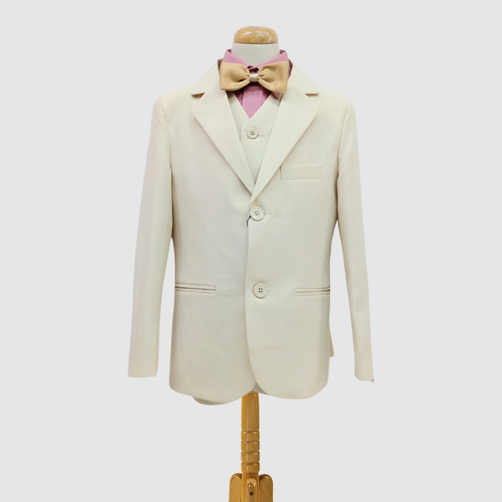 Este traje formal para ceremonia incluye saco, chaleco y pantalón, ideal para eventos formales. Confeccionado para brindar un ajuste impecable y una presentación elegante, este conjunto asegura comodidad y distinción en una ocasión especial. Perfecto para que los niños luzcan sofisticados y apropiados para el evento.