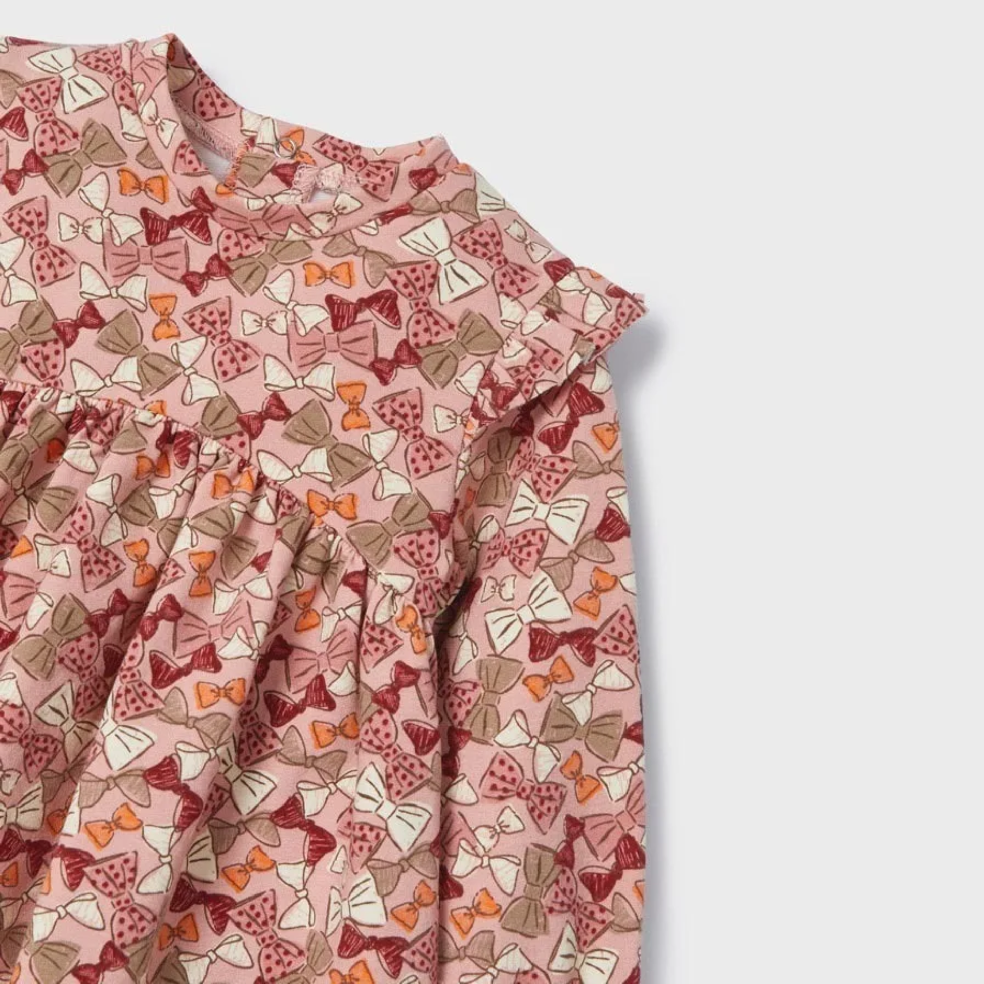 Este vestido de manga larga para niña combina comodidad y estilo con un estampado divertido de gatos en tonos verdes. Ideal para el invierno, ofrece calidez sin sacrificar la frescura del diseño. Perfecto para mantener a las pequeñas abrigadas y con un look encantador en cualquier ocasión casual o familiar.