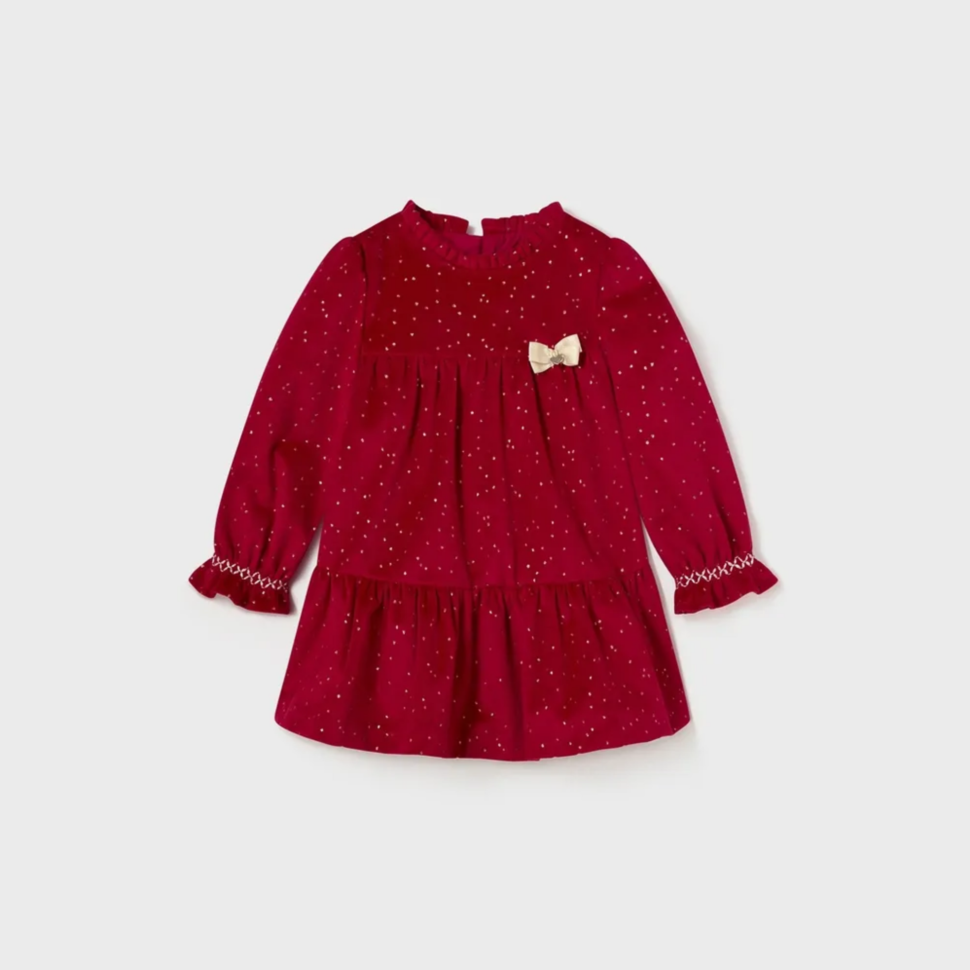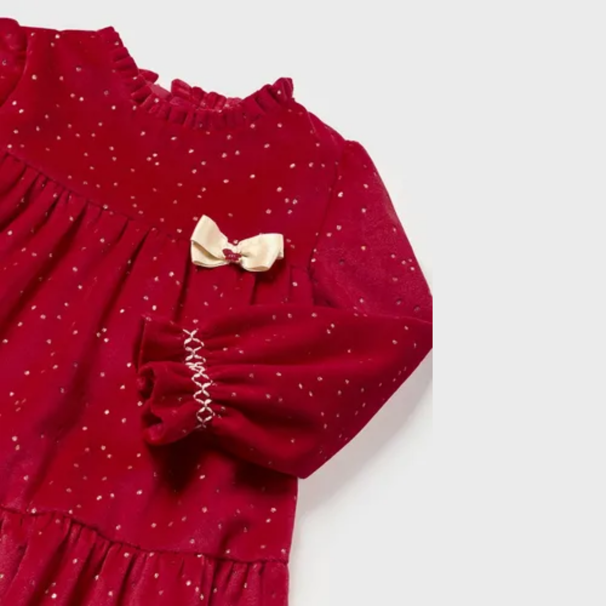 Este vestido rojo de invierno para bebé de la marca Mayoral combina estilo y comodidad, ideal para mantener a tu pequeño cálido y elegante. Su diseño incluye un delicado moño como adorno que añade un toque sofisticado sin sacrificar la suavidad del tejido, perfecto para pieles sensibles. Un clásico imprescindible para ocasiones especiales y el día a día durante la temporada fría.